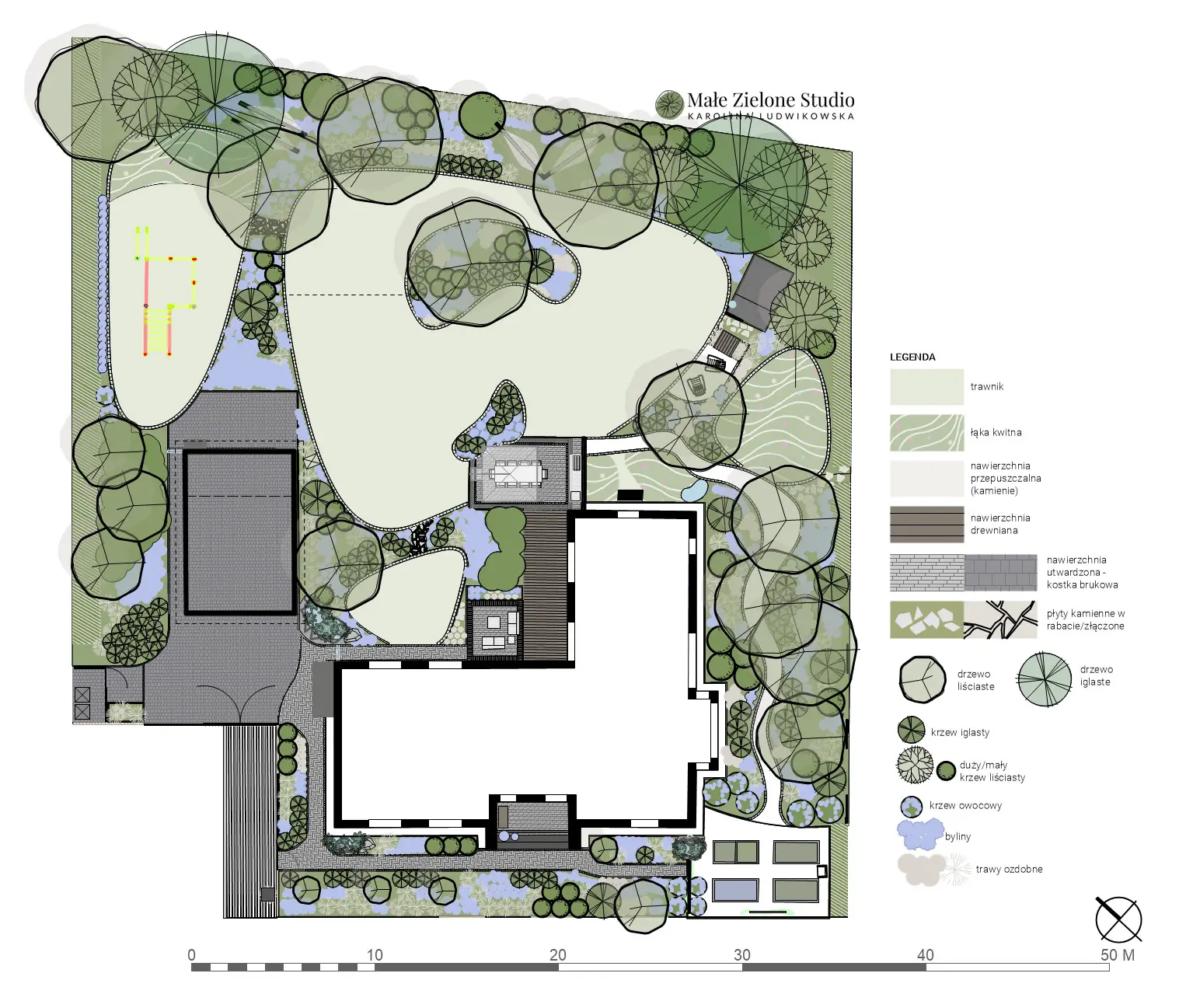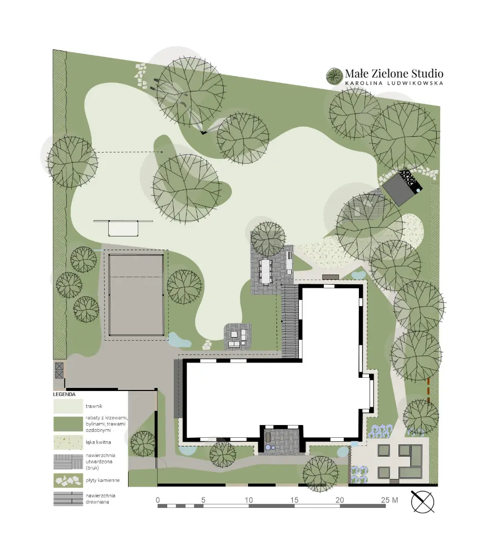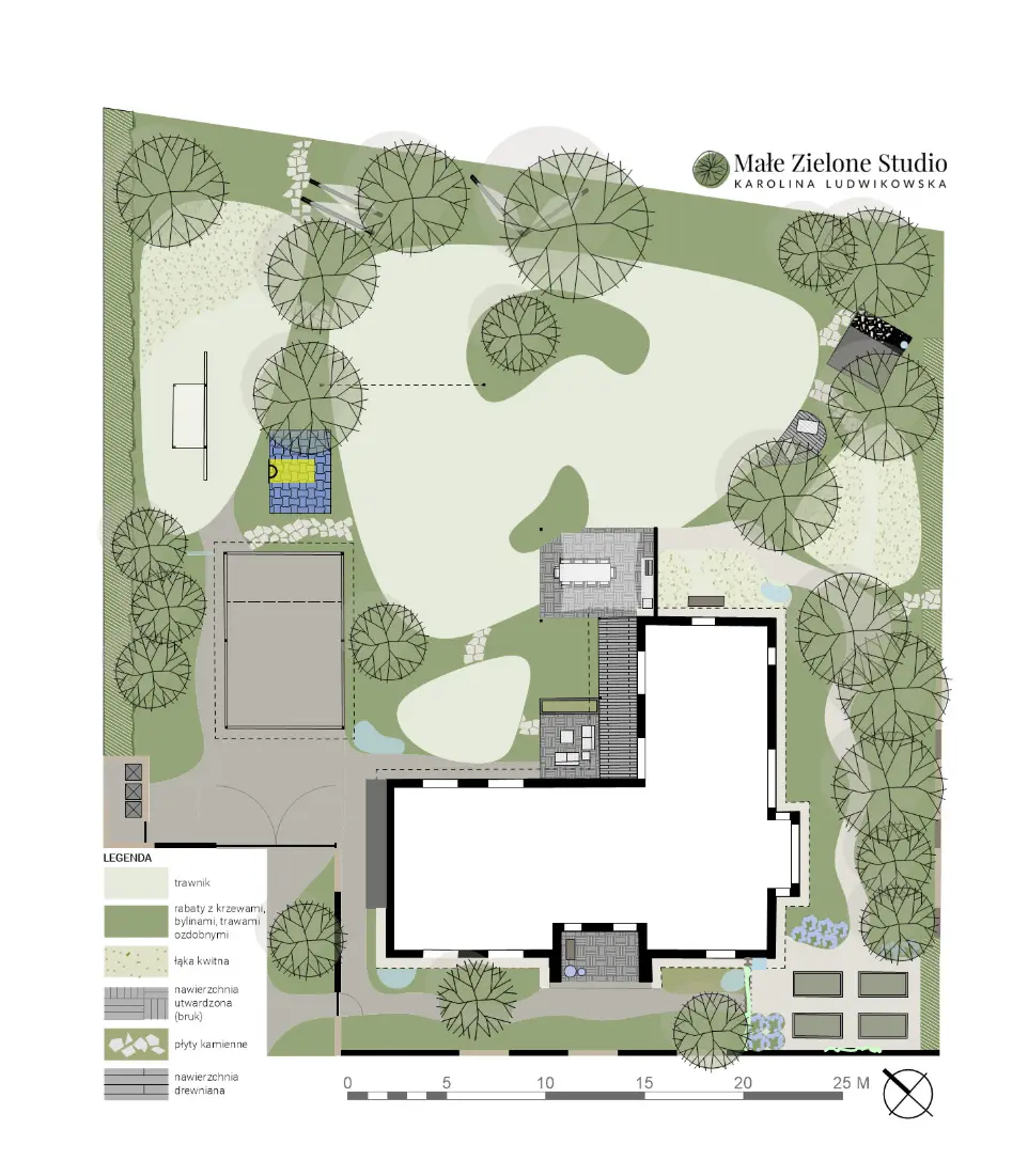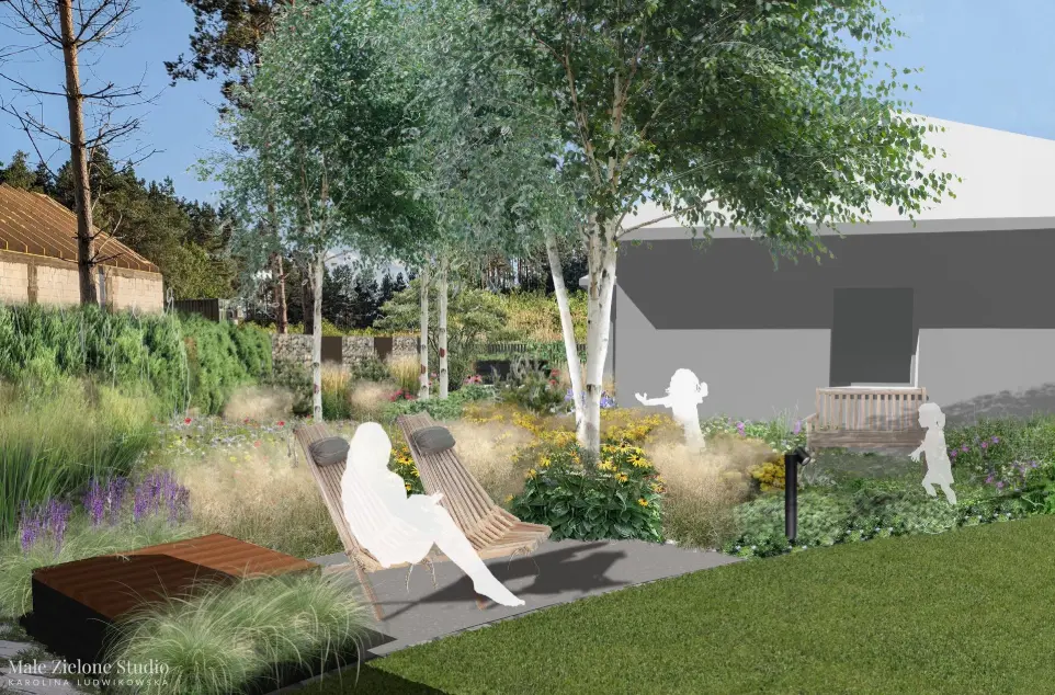 Ten projekt został stworzony z myślą o rekreacji dla dzieci i dorosłych, zapewnia przestrzeń do wypoczynku oraz aktywności dla całej rodziny. Styl naturalistyczny, swobodny i wybaczający niedoskonałości sprawia, że ogród jest przyjazny i łatwy w obsłudze, a przy tym świetnie wkomponowuje się w krajobraz.